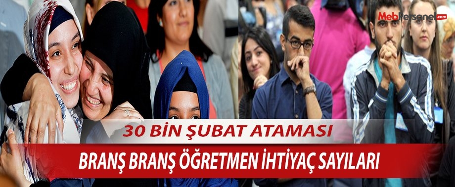 30 Bin Şubat Öğretmen atamaları için,  Branş Branş Öğretmen İhtiyaçları  Tablosu. Bu haberimizde öğretmen atamaları için öğretmen ihtiyaç sayılarının  bulabileceksiniz…
