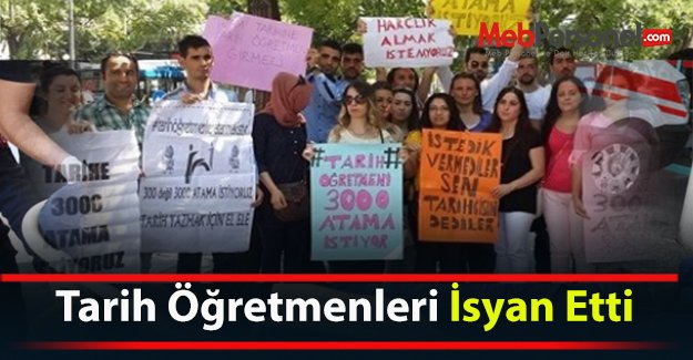 Öğretmen atamalarında en yüksek puan ile en az alım yapılan bölümün tarih öğretmenliği olduğunu belirten adaylar, sınavlara her yıl 14 bin öğretmen adayının girdiğini, her yıl fakültelerden binlerce adayın mezun olduğunu vurguladı. Buna karşın MEB’in her yıl sadec 300 tarih öğretmeni aldığına dikkat çeken adaylar,“300 kişilik atamalarla bu yığılma önlenemez” dedi.