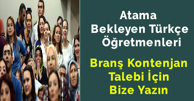 MEB PERSONEL-Türkçe   Öğretmenliği Branş Kontenjan Analizi İçin Bize Yazın. Türkçe  Öğretmenliği  branşında atama bekleyen öğretmen adaylarımızın dikkatine. Her gün farklı bir branşın kontenjan analizini yapıp siz atama bekleyen öğretmen adaylarımızı bilgilendiriyoruz. Yarın ki branş kontenjan analizi haberimizi atama bekleyen Türkçe   Öğretmenliği adaylarımıza ayırdık. Aşağıda verdiğimiz adrese branşınızla ilgili verileri ve atama talebinizi bize gönderirseniz onu haberleştirip sitemizde üst manşet olarak yayımlayıp yetkililere branş-kontenjan talebinizin ulaştırılmasında aracı olmak istiyoruz.