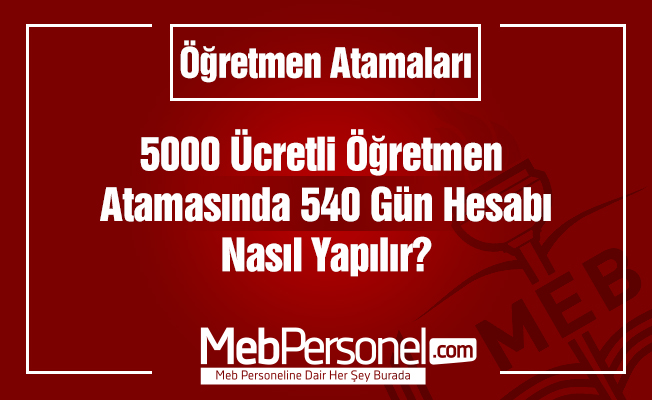 Milli Eğitim Bakanlığı(MEB), MEB’de ek ders ücreti karşılığında görev yapmış öğretmenlerden 540 gün ve üzerinde çalışanları mülakata alacak ve en çok 5000 ücretli öğretmen, sözleşmeli öğretmen olarak atanacak.