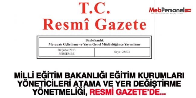 MEB Yeni Yönetici Atama Yönetmeliği Yayınlandı. Milli Eğitim Bakanlığı Yönetici Atama YönetmEliği Resmi Gazetenin 6 Ekim 2015 tarihli sayısında yayınlandı.