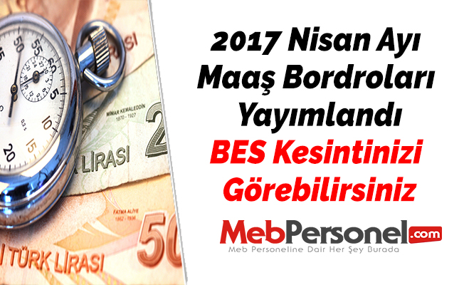 Memurların 2017 Nisan Ayı Maaş Bordroları Yayımlandı. Maaş Bordrolarında, Bu Ay İlk Defa Kesintisi Yapılan Bireysel Emeklilik Kesintisi (BES) miktarı görülebilecek.