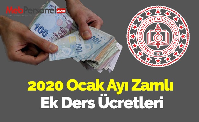 2020 yılı ocak ayı itibariyle net ek ders ücretleri: Kadrolu Öğretmenler: 16.02 TL Sözleşmeli Öğretmenler: 13.25 TL Temmuz ayı ek ders ücretleri: Kadrolu öğretmen: 15.40 Sözleşmeli öğretmen: 14:76