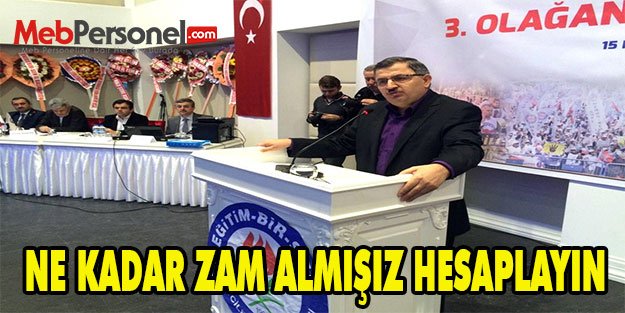 Dokuz yıl boyunca toplu görüşme yetkisini elinde bulundurup da hiçbir kazanım sağlayamayanlar olduğunu dile getiren Gündoğdu, şunları söyledi: “2009 yılında 20 lira taban aylık isteyip, ‘10 lira verirseniz imza atacağız’ diyenlerin, 10 liranın 17,5 katı taban aylığını değersizleştirmesine de müsaade etmeyelim. Neydi stratejimiz? Bütün illeri dolaşıyoruz 11 genel başkanımla. ‘Bir, ilkokul mezunu işçi kardeşime emekli olduğunda 90 bin liranın altında emekli ikramiyesi verilmezken, üniversite mezunu memur, neden 50 bin lirayı alamaz? İki, işçi kardeşimin 2 bin lira maaşla emekliye ayrıldığı gün, emekli maaşı bin 800 liranın altına inmezken, 2 bin lira maaş alan memurun maaşı neden bin 200 lirayı geçemez? Yüzdelik zamlarla hizmetliyle müsteşar arasındaki makas açılıyorsa, bunu çözümü nedir?’ gibi sorulara cevap aradık ve ‘taban aylığa zam alalım’ stratejisine oy birliğiyle karar verdik. Bunun anlamı nedir değerli arkadaşlarım, bunun anlamı emeklilik ikramiyesinin bu sene 5 bin 250 lira artırılmasıdır. Yüzdelik zam olsaydı artmayacak mıydı, artacaktı ama şimdi 5 bin 250 lira, 5 bin 250 liradan bin 600’ü çıkarın, kalanı 12’ye bölün, ne kadar zam almışız?”