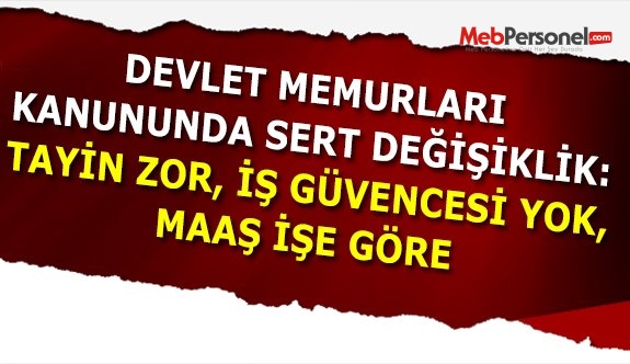 Hükümet, 15 Temmuz darbe girişimi sonrası mini Anayasa paketi için muhalefet partileriyle oluşturulan komisyona kamu personel rejimini değiştiren düzenlemeyi de getirecek. Buna bağlı olarak hükümet, 51 yıllık 657 sayılı Devlet Memurları Kanunu’nun yerine yenisini getirecek. Yeni düzenleme ile devlette çalışmaya başlayan memurların ömür boyu iş güvencesi ortadan kalkacak. Memurlar gerektiğinde işten kolaylıkla çıkarılabilecek. Memur maaşları verimlilik esasına göre belirlenecek. Eş durumu gibi nedenlerle memurların büyük kentlerde birikmesi önlenecek. Görevden alınanların mahkeme kararıyla dönmesi zorlaştırılacak.