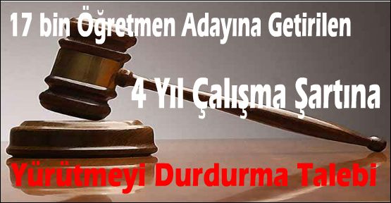 Meb tarafından şubat 2012 de atanan 17 bin öğretmen adayına getirilen 4 yıl çalışma şartına Yürütmeyi Durdurma Talebi için mahkemeye…