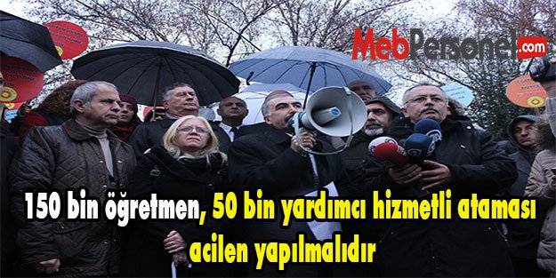 – Öğretmen, akademik personel, memur ve yardımcı hizmetli açıkları kapatılmalı, ilk etapta 150 bin öğretmen, 50 bin yardımcı hizmetli ataması acilen yapılmalıdır.