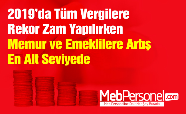 2019’da tüm vergilere gelen rekor artışın memur ve emekliler için maalesef geri dönütü olmuyor. 4. Dönem toplu sözleşmede alınamayan zamların bedelini memur ve emekliler ödemeye devam ediyor.