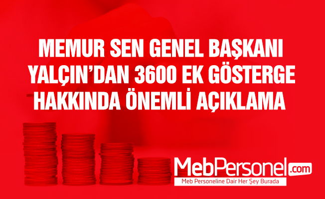 Beklentilerinin bütçe imkanları ve disiplinini mazeret olarak göstermeyen; Enflasyon yükselir tasasını masaya yansıtmayan aksine milletin kasasını millete hizmet için ter döken kamu görevlilerine açan; Ve hakları kadar maaş zammını bordrolara yansıtan bir Kamu İşvereni iradesinin masaya değer, önem vermesi olduğunu söyleyen Memur-Sen Genel Başkanı Ali Yalçın, “Kamu görevlileri açısından önemli olan bir diğer konu 3600 ek gösterge…3600 ek göstergeye Cumhurbaşkanımız tarafından ortaya konan vaadi hem destekliyor hem de yetersiz buluyoruz.