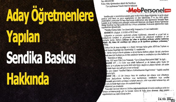 Aday Öğretmenlerin Belirli Bir Sendikaya Üye Yapılmasına Yönelik Baskılar Hakkında Eğitim-İş Genel Merkezinden Çıkan Yazı
