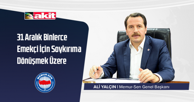 Memur-Sen Genel Başkanı Ali Yalçın, Yeniakit.com.tr Genel Yayın Yönetmeni İsmail Uğur’un sorularını cevapladı. Belediyelerdeki kıyımlara dikkat çeken Yalçın, 31 Aralık’ın binlerce emekçi için “soykırıma” dönüşmek üzere olduğunu ifade etti.