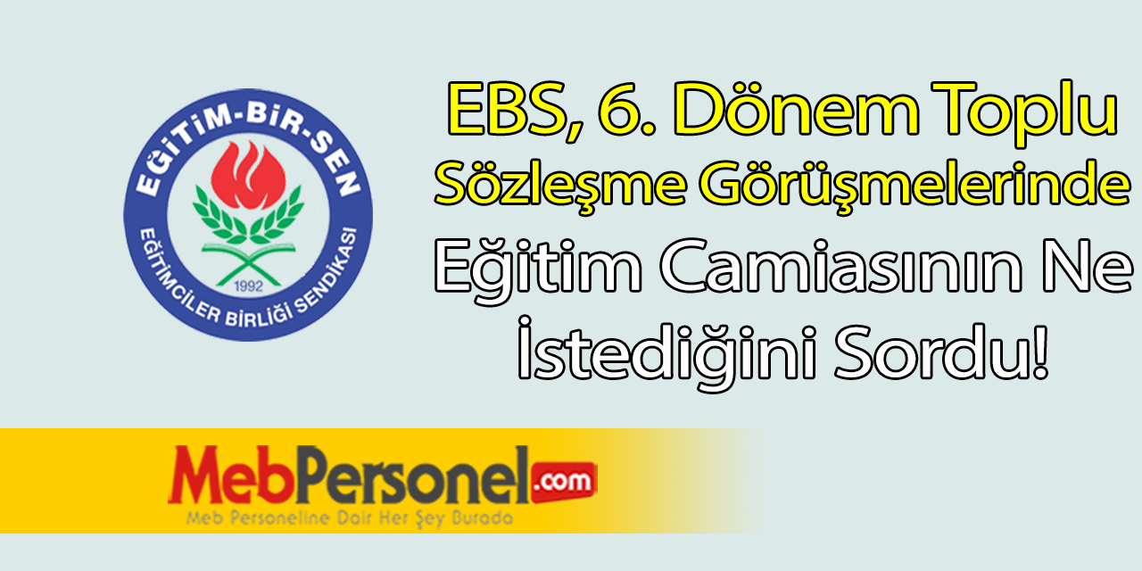 Memur-Sen’e bağlı Eğitimciler Birliği Sendikası(EBS) ”Talebiniz Teklifimiz Olsun” sloganıyla eğitim camiasından talep toplamaya başladı. Sendika, talep yoğunluğu fazla olan konuları toplu sözleşme görüşmelerinde öncelikle dile getirecek.