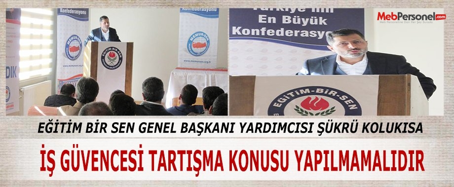 Eğitim-Bir-Sen Genel Başkan Yardımcısı Şükrü Kolukısa, çözüm bekleyen onca sorun dururken, iş güvencesini tartışmaya açmanın hiç kimseye faydasının olmayacağını belirterek, “İş güvencesi tartışma konusu yapılmamalıdır. Siyaset kurumu istihdam alanlarının açılmasıyla meşgul olmalı, sorunları çözmeye odaklanmalı, yeni sorun alanları üretmemelidir. Kamu görevlilerinin iş güvencesinin tartışıldığı, tartışılacağı ya da sona erdirileceği algısı uyandıracak açıklamaların yapılması çalışma hayatının ve toplumsal barışın dinamitlenmesidir. İş güvencesini sadece kırmızı çizgimiz olarak değil, Büyük Türkiye’nin güvencesi olarak da görüyoruz. Bu hassasiyetimizi ve iş güvencemizi sonuna kadar koruyacağız” dedi.