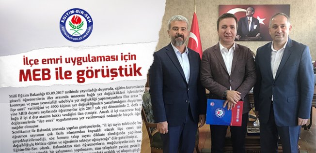 Sendikamız ile Bakanlık arasında yapılan görüşmelerde, “il içi tayin talebinde bulunan öğretmen sayısının çok fazla olmasından kaynaklı olarak ilçe emri talebinin gerçekleştirilemediği, söz konusu talep sayısı dikkate alındığında yapılacak yer değişikliğiyle birlikte eğitim ve öğretimin sekteye uğrayacağı” dile getirilmiştir.