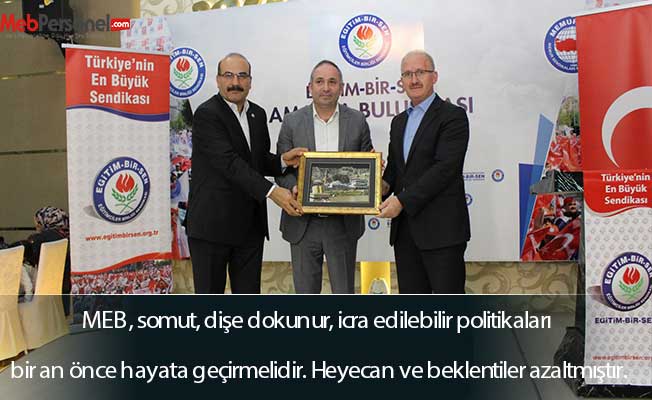 Eğitim-Bir-Sen Genel Başkan Yardımcısı Hasan Yalçın Yayla, kırıp dökmeden, mücadele ve müzakere ederek sorunlara çözüm bulma arayışında olduklarını ifade ederek, “Alışılagelen sendikacılığa biçilen rollerin ötesine geçerek, bu alana yeni bir soluk getirdik. Sorunları tespit etmekle yetinmedik, önerilerimizle çözümün yolunu gösterdik. Çalışmalarımızla, mücadelemizle pek çok sorunun çözüme kavuşmasını sağladık. Yasaklara karşı çıktık, özgürlükleri savunduk. Bütün bunları üyelerimizden aldığımız destekle, örgütlü gücümüz sayesinde başardık. Hak ve emek mücadelesi veren sendika olarak, yetkililerden de eğitim çalışanlarının beklentilerini karşılayacak icraat bekliyoruz” dedi.