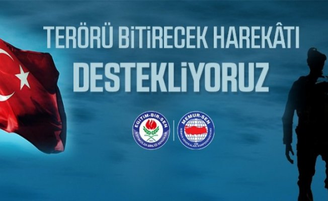 Eğitim-Bir-Sen olarak, emperyalistlerin taşeron terör örgütlerinin eliyle toza dönüştürmek istediği toprakların yeniden sahipleriyle buluşması için devletimiz tarafından gerçekleştirilecek Barış Pınarı harekâtının yanında durduğumuzu ifade ediyoruz.