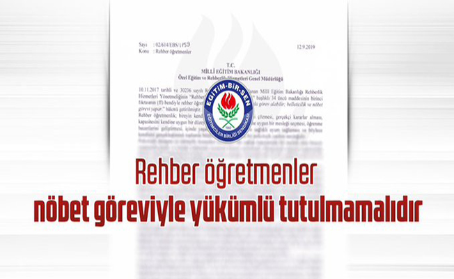 Eğitim-Bir-Sen olarak, Millî Eğitim Bakanlığı’na başvurarak, rehberlik öğretmenlerine nöbet ve belleticilik görevi üstlenme zorunluluğu getiren rehberlik hizmetleri yönetmeliğinin ilgili hükmünün kaldırılmasını ya da söz konusu görevlerin rehberlik öğretmenlerinin isteklerine bırakılması noktasında düzenleme yapılmasını talep ettik.