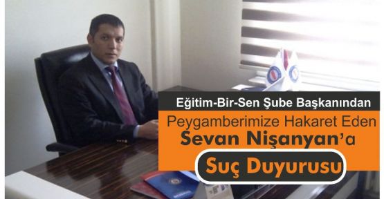 Eğitim-Bir-Sen Ankara 4.No’lu Şube Başkanı Tekin Korku, Taraf Gazetesi Yazarı Sevan Nişanyan’a “Nefret Suçlarıyla Mücadele Etmeli” başlıklı yazısıyla Peygamber Efendimizi küçük düşüren, onur kırıcı ithamlar ile hakaret ettiği gerekçesiyle hakkında soruşturma yapılarak kamu davası açılması ve cezalandırılması talebiyle suç duyurusunda bulundu.