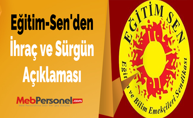 Ülkemizin en temel sorunlarından olan eğitim sorunları, yeni müfredat, yeni ders kitapları, öğretmen açıkları ve ataması yapılmayan öğretmenler sorunu çözüm beklerken, MEB bu sorunları bir tarafa bırakmış ve kendisine sadece Eğitim Sen’i hedef almıştır. Laik bilimsel eğitim düşmanı yeni müfredata karşı yürüttüğümüz mücadeleden rahatsızlık duyanlar, okulların açılmasına sayılı günler kala aldıkları hukuk dışı sürgün kararlarıyla laik bilimsel eğitim mücadelesini bölmeyi ve zayıflatmayı hedeflemektedir.