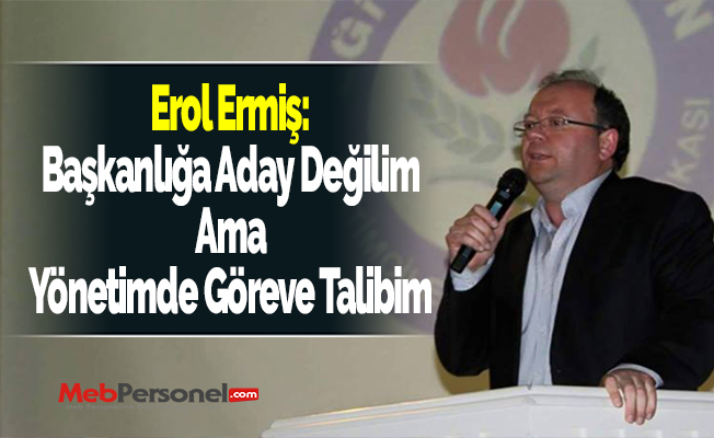Dün Erol Ermiş’in Eğitim-Bir-Sen Genel Başkanlığına aday olacağına dair iddialar ortaya atılmıştı. Konuyla ilgili iddialara sessiz kalmayan Ermiş; genel başkanlığa aday olmayacağını açıkladı.