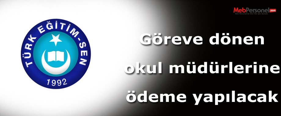 TÜRK Eğitim-Sen İzmir Şube Başkanı Merih Eyyüp Demir, “Türkiye genelinde, görevlerinde 4 yılını dolduran okul müdürlerine yönelik değerlendirmede 75 puanı aşamayarak koltuklarını kaybeden, ancak ‘puanlamanın objektif yapılmadığı’ gerekçesiyle yargıya başvurarak görevlerine dönen müdürler, maddi kayıplarını geri almaya başladı” dedi. Demir, görevlerine dönen müdürlere, bin 500 ile 15 bin lira arasında ödeme yapılacağını kaydetti.