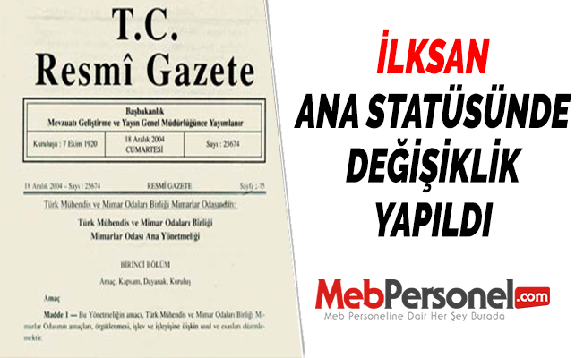 İLKSAN ANA STATÜSÜNDE DEĞİŞİKLİK YAPILDI. KARAR RESMİ GAZETEDE YAYIMLANDI.