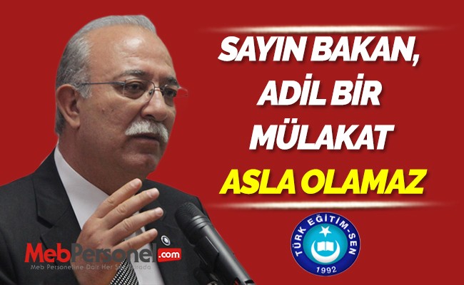 Türk Eğitim Sen olarak, mülakatın yanlış bir yöntem olduğunu her fırsat ve zeminde anlatmaya devam edeceğiz. Yanlıştan dönmek erdemdir.”