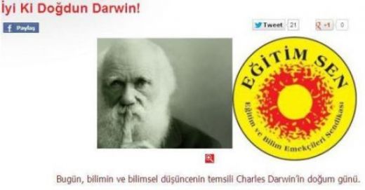 Eğitim-Sen, resmi web sitesinde Darvin’in doğum gününü kutlarken bilime, eleştirel akla, yaşama sunduğu büyük katkı için Darvin’e teşekkür etti.