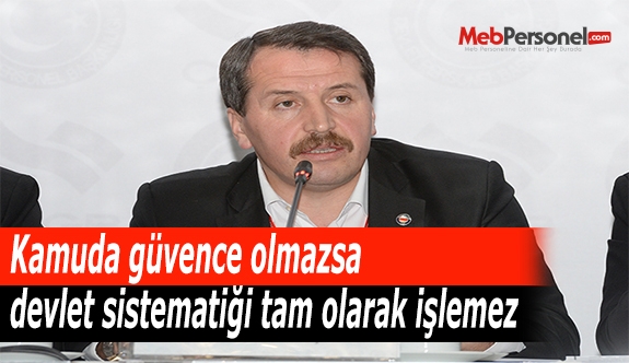 “Şunun altını net olarak çizelim. Kamuda güvence olmazsa devlet sistematiği tam olarak işlemez” diyen Yalçın, sözlerini şöyle sürdürdü: “Kamu yönetimi, kamu personel sistemi ve kamu hizmetlerinden oluşan kamu düzeni üçgeni, vatandaş-devlet ilişkilerinin merkez alanıdır. Bu üçgenin herhangi bir kenarı deforme olduğunda, hem diğer kenarları hem de üçgenin alanı olumsuz etkilenecektir. Kamu düzeninin korunması, onu var eden unsurların asli niteliklerinin korunmasıyla mümkündür. Bu boyutuyla, kamu yönetiminde güven, kamu personel sisteminde güvence ve kamu hizmetlerinde kalite hem soyut değer hem de somut sonuç olarak var olmalıdır. Aksi halde, kamu düzenini tehdit eden risk ve tehlikelere kapı aralanmış olur. Memur-Sen olarak ‘iş güvencesi kırmızı çizgimizdir’ derken, emek örgütü olarak sahip olduğumuz nicel potansiyeli korumayı değil, üzerinde yaşadığımız toprakların ortak vatan, ortak yurt olmasını sağlayan niteliklerimizi harmanlayan ‘güven duygusunu’ esas alıyoruz. Kamu personel sistemimizin ana gövde unsurlarından iş güvencesini, devletin ve milletin bekası açısından da garantör değerlerden biri olarak kabul ediyoruz.”