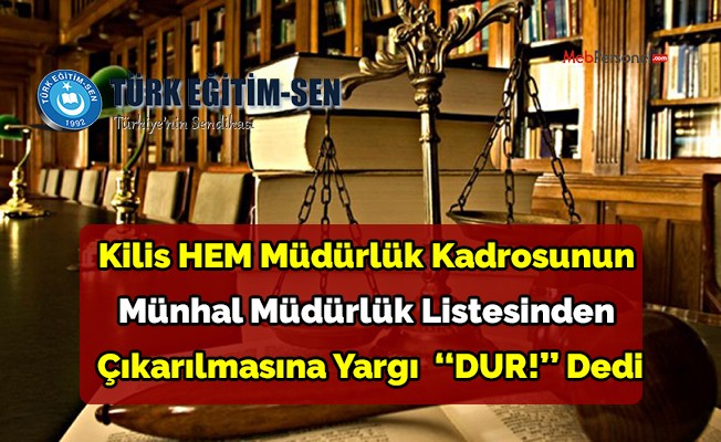 Yargı açtığımız davayı haklı bularak, ‘‘…Müdürlük ile bir müdür yardımcılığı kadrosunun boş olduğu anlaşılan ve ilan edilen Kilis Halk Eğitim Merkezi’nin münhal müdürlük listesinden çıkarılmasının dayanağı olan haklı sebepler davalı idarece ortaya koyulamadığından dava konusu işlemde sebep yönünden hukuka uyarlık bulunmamıştır” dedi. Bu şekilde dava konusu işlemin YÜRÜTMESİNİN DURDURULMASINA karar verildi.