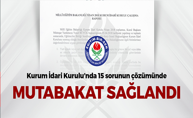 Kurum İdari Kurulu Başkanı ve MEB Müsteşar Yardımcısı Yusuf Büyük, İnsan Kaynakları Genel Müdürlüğü Daire Başkanı Bekir Erdoğan, Ortaöğretim Genel Müdürlüğü Daire Başkanı Abdullah Yurdabakan, Eğitim-Bir-Sen Genel Başkan Vekili Latif Selvi, Genel Başkan Yardımcısı Ramazan Çakırcı ve Hasan Yalçın Yayla tarafından imzalanan mutabakat metninde, çalışma yapılması konusunda görüş birliğine varılan konular şunlar: