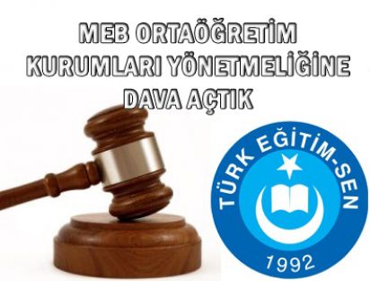 Türk Eğitim Sen olarak, üyelerimizden gelen talep ve şikayetler doğrultusunda, bahsi geçen Yönetmeliğin 45. Maddesinin 1. Fıkrasının (b) bendinde “aynı okul türünde..” ibaresinin yer almamasına ilişkin eksik düzenlemenin, 88. Maddesinin 2. Fıkrasının (c) bendinde “..iki katını..” ibaresinin yer almamasına ilişkin eksik düzenlemenin, aynı fıkranın (f) bendinde yer alan “..15 öğrenciye kadar..” ibaresinin ve “ Bu kapsamda aynı öğrenci gurubu için haftada bir defa ve yalnız bir öğretmene koordinatörlük görevi verilir.” ibaresinin, 92. Maddesinin 2. Fıkrasının ilk cümlesinde “istekli öğretmenler arasından..” ibaresinin yer almamasına ilişkin eksik düzenlemenin, 127. Maddesinin 6. Fıkrasında yer alan “15 öğrenci için..” ibaresinin öncelikle iptali istemiyle Danıştay’da dava açtık.