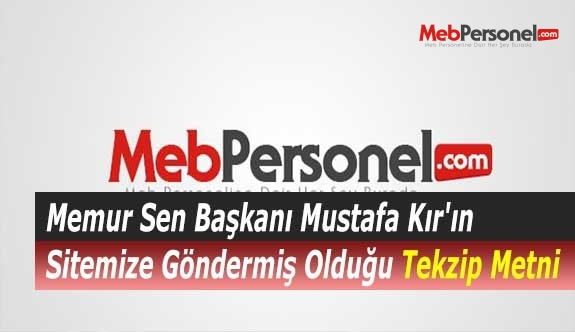 Memur-Sen Ankara İl Başkanı Mustafa Kır'ın Sitemize Göndermiş Olduğu Tekzip Metni: