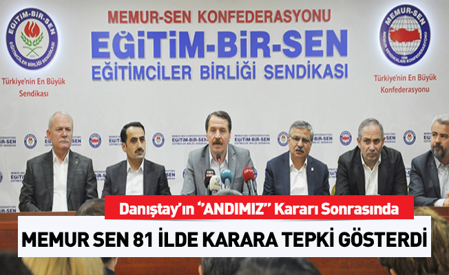 Eğitim-Bir-Sen, Danıştay 8. Dairesi’nin, Öğrenci Andı’nı kaldıran yönetmelik hükmünü iptal etmesi kararına, 81 ilde basın açıklaması yaparak tepki gösterdi.