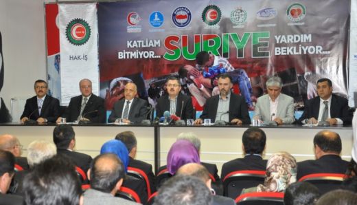 Hak-İş Genel Başkanı Mahmut Arslan ise, Suriye’de yaşananlara dikkat çekmek için sivil toplum kuruluşları olarak biraraya geldiklerini belirterek, Suriye gibi, hem kültürel hem de tarihsel bağlarının bulunduğu kardeş bir ülkede yaşananlara duyarsız kalamayacaklarını vurguladı.