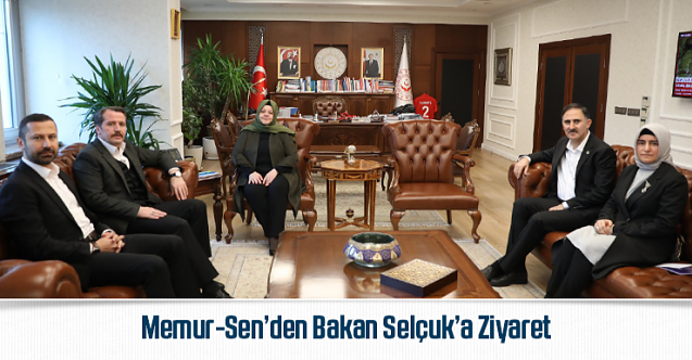 Bakanlıkta gerçekleştirilen görüşmede Memur-Sen Genel Başkanı Ali Yalçın, Memur-Sen Genel Sekreteri Semih Durmuş, Memur-Sen Genel Başkan Yardımcısı Soner Can Tufanoğlu ve Memur-Sen Kadınlar Komisyonu Başkanı Sıdıka Aydın’dan oluşan Memur-Sen Heyeti, Aile, Çalışma ve Sosyal Hizmetler Bakanı Zehra Zümrüt Selçuk’u makamında ziyaret etti.