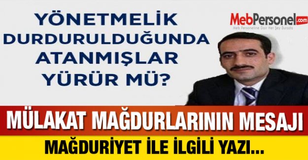 14.05.2014 tarihinde ( http://www.egitimbirsen.org.tr/ramazan-cakirci/yonetmelik-durduruldugunda-atanmislar-yurur-mu-/324/makale ) yazdığınız ve yönetmelik durduğunda atamalar hükümsüz dediğiniz bir durumda , ne değişti? Bu hukuksuzluk karşısındaki suskunluğunuzun elbet bir izahı olmalı. ‘’Camii yık ;ama adaleti yıkma ‘’ anlayışına sahip olan bir İslam kültürünün eseri bu olmasa gerek! ’’ Yönetmelik durduğu zaman atamalar hükümsüz.’’ Sözünüzün ardında durun. Biz hep size inandık; biliyoruz ki siz bizi hiç kandırmadınız. Kandırmayınız da…