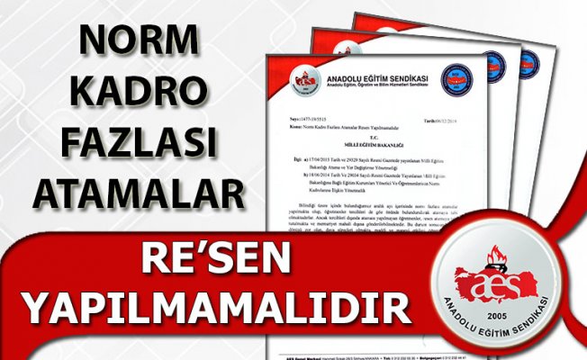 Bilindiği üzere içinde bulunduğumuz aralık ayı içerisinde norm fazlası atamalar yapılmakta olup, öğretmenler tercihleri de göz önünde bulundurularak atamaya tabi olmaktadırlar. Ancak tercihleri dışında ataması yapılmayan öğretmenler, resen atamaya tabi tutulmakta ve memuriyet mahali dışına gönderilebilmektedir. Bu durum sonucunda geri dönüşü zor olan, dava süreçleri olmakta, maddi ve manevi etkileri öğretmenler ve bakanlık nezdinde görülmektedir. Önümüzdeki yıl özellikle ortaöğretim kurumları 8 yıl önce 60-72 ay arası okula kaydolmuş öğrencilerin yoğun talebi ile karşılaşacaktır. Bu durum göz önünde bulundurularak norm fazlası öğretmen atamalarının resen yapılmaması gerektiğini, Anadolu Eğitim Sendikası olarak, Milli Eğitim Bakanlığına arz ettik ve il milli eğitim müdürlüklerinin uyarılmasını talep ettik.