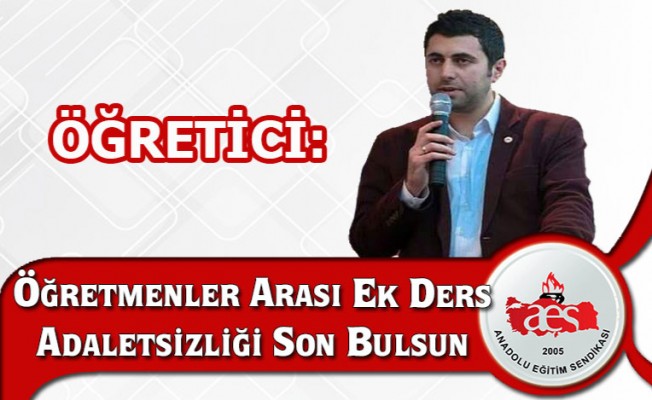 Anadolu Eğitim Sendikası Genel Başkanı Mehmet Alper ÖĞRETİCİ, öğretmenlerin ek ders adaletsizliği ile ilgili açıklamalarda bulundu. ÖĞRETİCİ açıklamasında öğretmenlerin ek ders adaletsizliğinin giderilmesi gerektiğini ifade ederek şu açıklamalara yer verdi: