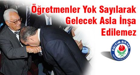 1624 TL maaş alan öğretmenin isyanını anlamak yerine ‘Öğretmen maaşları memura haksızlık’ diyen Sayın Başbakan’ın “Bu camia benim en çok saygı duyduğum kesimdir” sözünün devamını uygun bitirmesini arzu ederdik. Tıpkı 24 Kasım 2010’da öğretmenlere yönelik, “Bizler, hükümetimizi kurarken ‘önce insan’ parolasıyla yola çıktık, ‘İnsanı yücelt ki devlet yücelsin’ dedik. İnsana yapılan her yatırım, insanın yetişmesine verilen her emek bizim nazarımızda kutsaldır. Bu anlayışla en fazla yatırımı eğitime yaptık, eğitimi her şeyin önünde tuttuk; eğitimcilerimize, öğretmenlerimize özel önem atfettik” sözlerinde olduğu gibi.