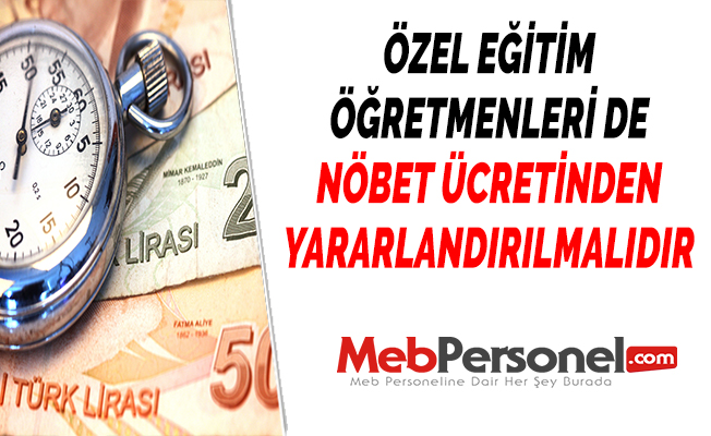 Türk Eğitim Sen olarak Bakanlığa gönderdiğimiz yazıda, özel eğitim sınıflarında görevli olup, nöbet görevini fiilen yerine getirmeyen, ancak özel eğitim ihtiyacı olan öğrencilerin durumları ve ihtiyaçları nedeniyle teneffüs ve yemek saatlerinde bilfiil çalışarak öğrencilerin gözetimine devam eden öğretmenlerimize de 2016-2017 yılına yönelik toplu sözleşme metninin 22. Maddesi çerçevesinde nöbet ücreti ödenmesi hususunda talepte bulunduk.