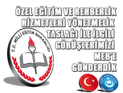 Milli Eğitim Bakanlığı’nca Milli Eğitim Bakanlığı Özel Eğitim ve Rehberlik Hizmetleri Yönetmelik Taslağı24.01.2014 tarihinde yayınlanmış olup, üyelerimizden ve şubelerimizden gelen talepler doğrultusunda yapılan komisyon çalışması sonucu hazırlanan taslak hakkında görüşlerimiz MEB’e iletilmiştir.