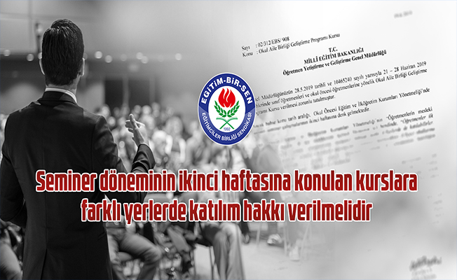 Okul Öncesi Eğitim ve İlköğretim Kurumları Yönetmeliği’nin “Öğretmenlerin mesleki çalışmaları” başlıklı 38. maddesinin üçüncü fıkrasının (c) bendinde, “Öğretmenler ilk haftadan sonraki seminer çalışmalarına istemeleri hâlinde farklı il/ilçelerde de katılabilirler. Farklı il ve ilçelerde seminere katılacak öğretmenler, seminere katılacakları il/ilçeyi okullarına dilekçe ile bildirmek ve mesleki çalışma döneminin sonunda bu çalışmalara katıldığını belgelendirmek zorundadır” hükmü yer almaktadır.