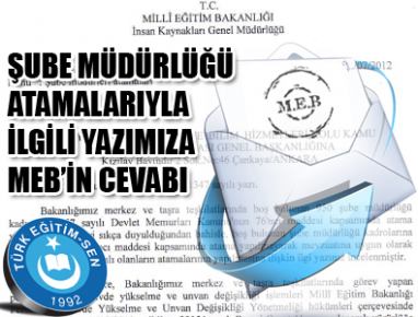 Türk Eğitim-Sen olarak Bakanlığa gönderdiğimiz yazıda, medyada yer alan haberler doğrultusunda, münhal bulunan 950 şube müdürlüğü kadrosuna Milli Eğitim Bakanlığı tarafından 76.madde kapsamında atama yapılması halinde bu atamaların Sendikamızca yargıya taşınacağını, kamuoyunda oluşan tereddütlerin giderilmesi için ivedilikle bir açıklama yapılmasını, 76.madde kapsamında bir atama şekli düşünülüyorsa bundan vazgeçilmesini, münhal bulunan şube müdürlüğü kadrolarının mevzuata uygun olarak yapılacak sınav neticesinde başarılı olanların atanması suretiyle doldurulmasını talep etmiştik.