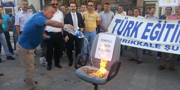 Okul müdürlerinin adaletsiz bir şekilde göreve getirildiğini savunan Türk Eğitim-Sen Kırıkkale Şubesi koltuk yaktı. İl Millî Eğitim Müdürlüğü önünde koltuk yakıp bu durumu protesto eden üyeler, olay yerinden olaysız bir şekilde ayrıldı.