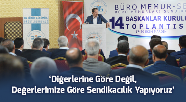 Büro Memur-Sen 14’üncü Başkanlar Kurulu toplantısı, Mardin’de yapıldı. Toplantıya Memur-Sen Genel Başkanı Ali Yalçın, Memur-Sen Genel Başkan Yardımcısı Mehmet Emin Esen, Büro Memur-Sen Genel Başkanı Vecdi Yanbaz, Genel Başkan Vekili Ahmet Sefa Özşahin, Genel Başkan Yardımcıları Metin Yılancı, Bekir Turhan, Yıldırım Akbaba, Turan Çetinkaya ve Feyim Bingöl, Memur-Sen Mardin İl Temsilcisi Mustafa Aydın ile ülkenin dört bir yanından gelen şube başkanları katıldı.