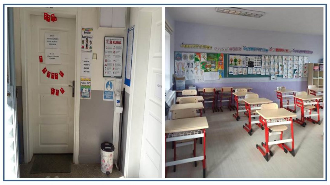Eğitim ortamlarının düzenli olarak doğal yollarla havalandırılması için gerekli düzenlemeler yapıldı. Öğrenciler arasında malzeme alışverişi yapılmaması konusunda gerekli bilgilendirmeleri içeren uyarılar ilgili alanlara asıldı. Sınıflarda yüksek sesle etkinlik yapılmaması için düzenlemeler yapıldı.