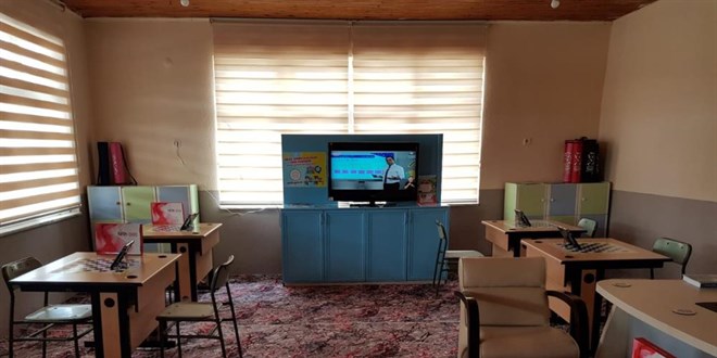 Denizli’nin Kale ilçesinde köy kahvehanesi, uzaktan eğitime katılamayan öğrenciler için tadilat yapılarak hijyen ortamı sağlanmasının ardından Eğitim Bilişim Ağı (EBA) destek noktasına dönüştürüldü.