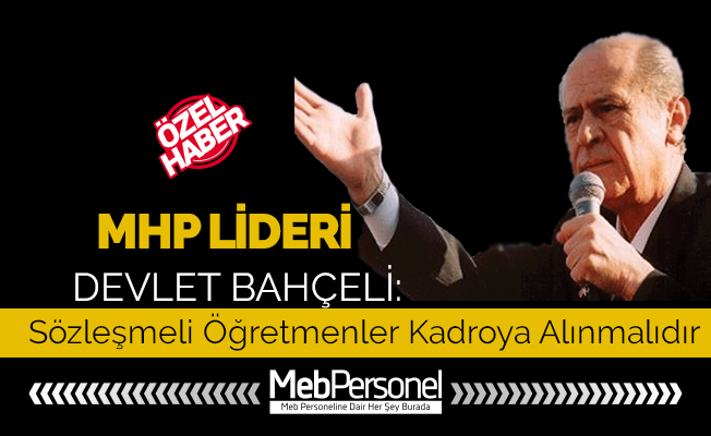Bahçeli, sözleşmeli olarak atanan 18 bin 500 öğretmenin kadroya alınması gerektiğini savundu. Öte yandan eğitim ödeneklerinin artırılması, öğretmenlerin ek gösterge tutarlarının 3600’e yükseltilmesi, özür grubu atamalarındaki sorunlar, emekli öğretmenlerin sorunları ve rotasyon gibi konulara değinen Bahçeli, öğretmenlerin her zaman yanında olacaklarını ifade etti.