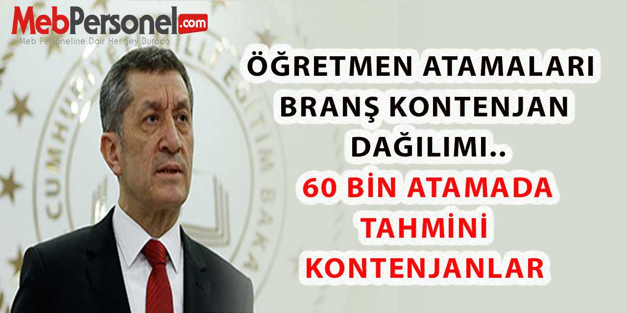 Mebpersonel.com olarak tahmini branş kontenjan dağılımını 60 bin atamaya göre düzenledik. Sizler için paylaşıyoruz.